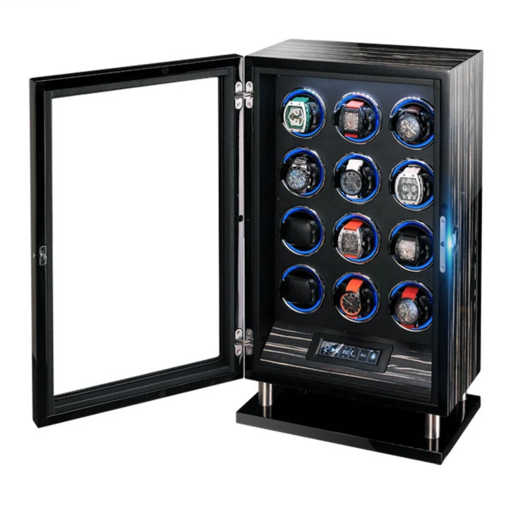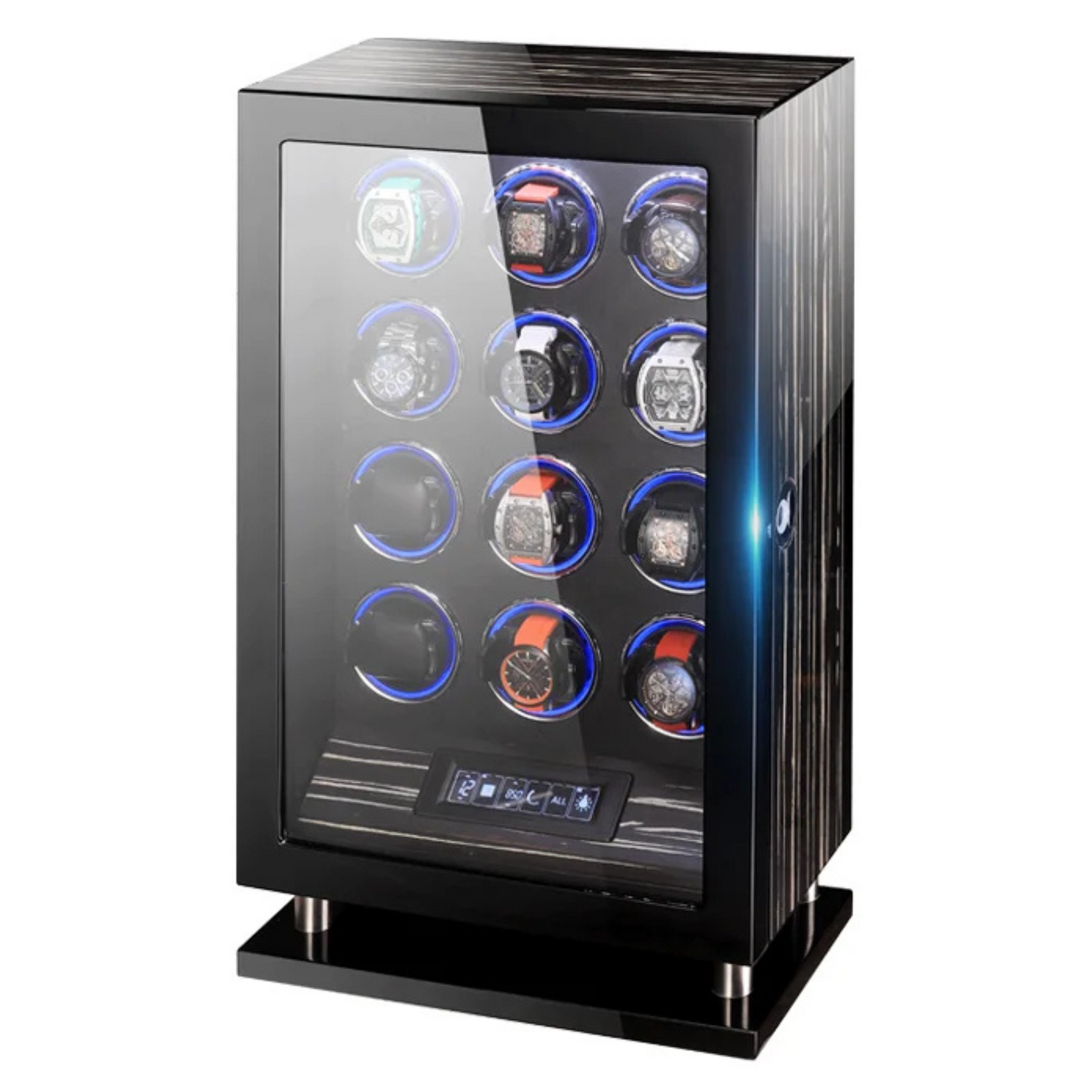 Capacité : Grande capacité pour plusieurs montres (le nombre exact dépend de la version, ex: 8, 12 ou plus), assurant l'entretien de l'ensemble de votre collection.