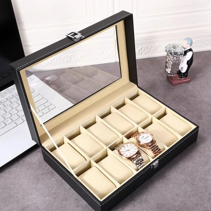 Capacité : Rangement pour plusieurs montres (le nombre exact dépend de la version, généralement 6, 8 ou 12), avec des emplacements individuels.