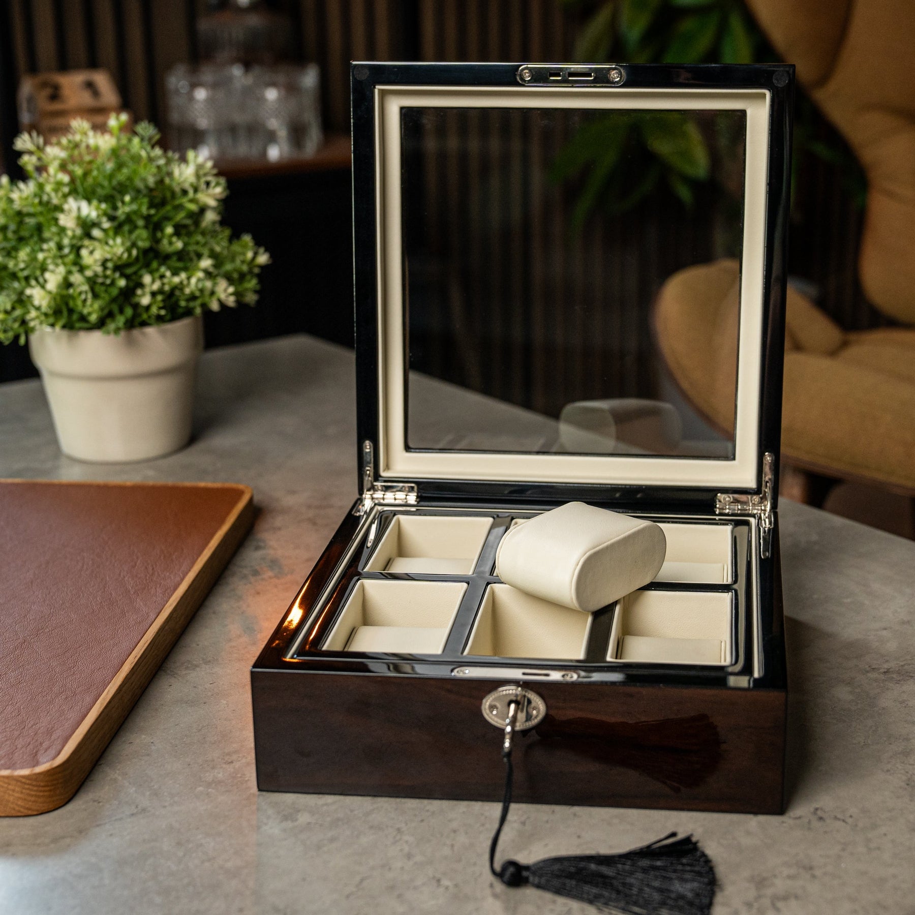 Vitrine Intégrale : Couvercle entièrement vitré, permettant une mise en valeur tridimensionnelle sans faille de chaque montre.