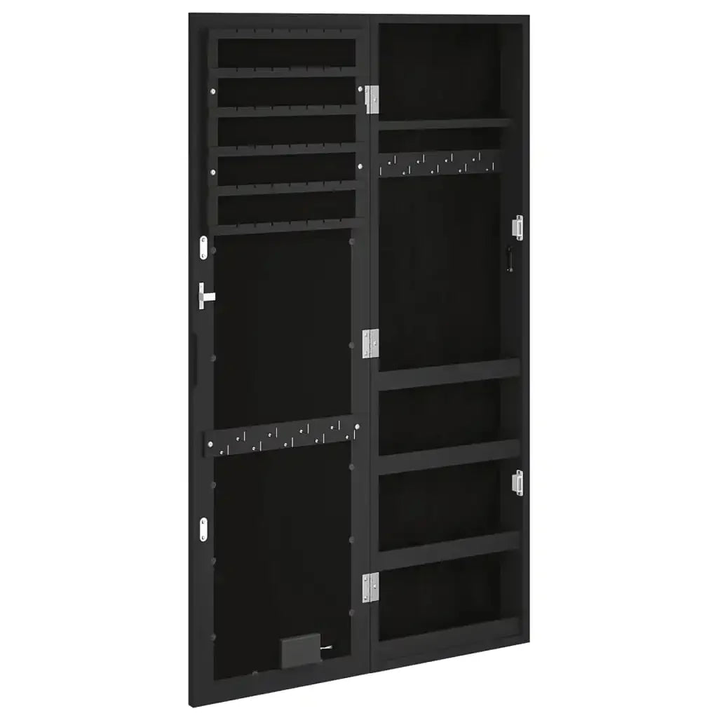 Organisation Complète : Multiples crochets pour colliers, étagères pour montres, et compartiments pour bagues et boucles d'oreilles. La structure permet une mise en valeur tridimensionnelle de la collection.
