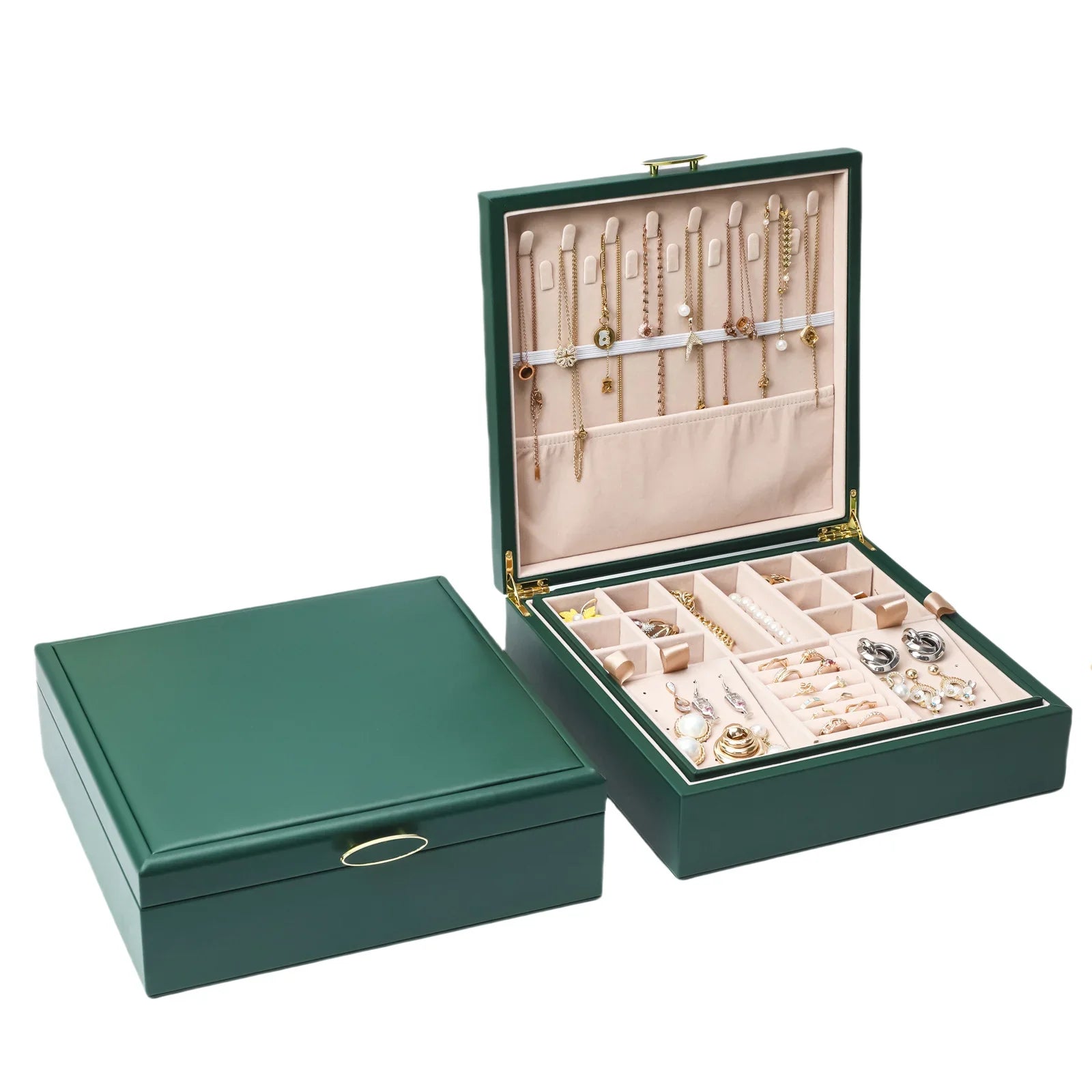 Organisation Modulaire : Multiples compartiments (pour bagues, colliers, boucles d’oreilles) et pochettes, permettant une mise en valeur tridimensionnelle de chaque section.