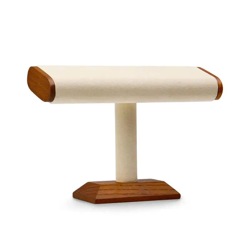 Coussin (ou support) : Forme en T ou en I (selon les images) recouverte de cuir synthétique premium ou de suédine, offrant un aspect lisse et raffiné pour accueillir la montre.