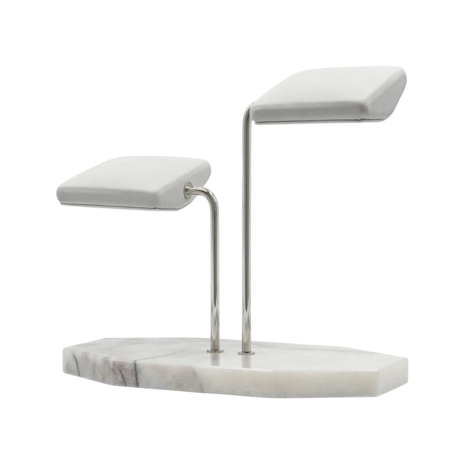 Alliant design architectural minimaliste et matériaux nobles (marbre ou base minérale), ce présentoir sur pied Paris Héritage, baptisé Le Minéral, a été imaginé pour mettre en valeur chaque montre comme une véritable œuvre d’art. Son socle structuré et sa tige métallique fine créent une posture aérienne et raffinée, évoquant la précision et la pureté des grandes maisons horlogères.