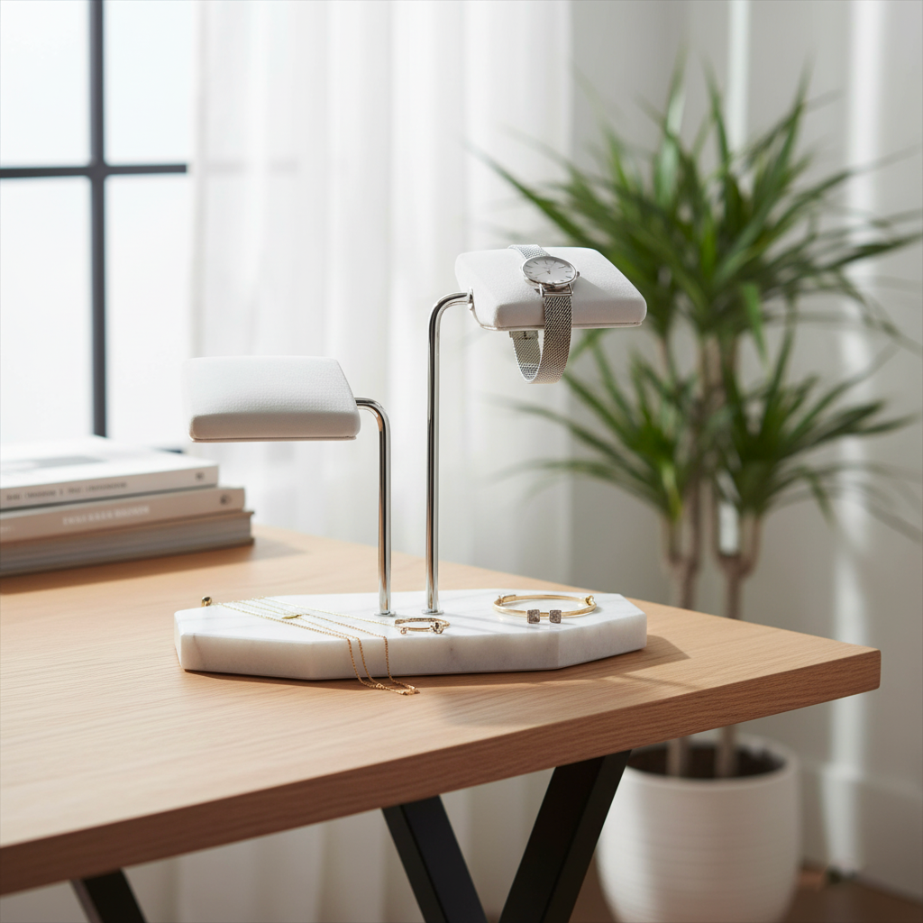 Adaptabilité : Le support s’adapte à tous types de bracelets (cuir, acier, caoutchouc) pour une tenue impeccable.